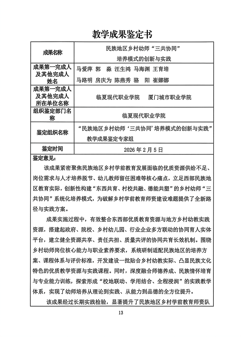 教学成果鉴定书