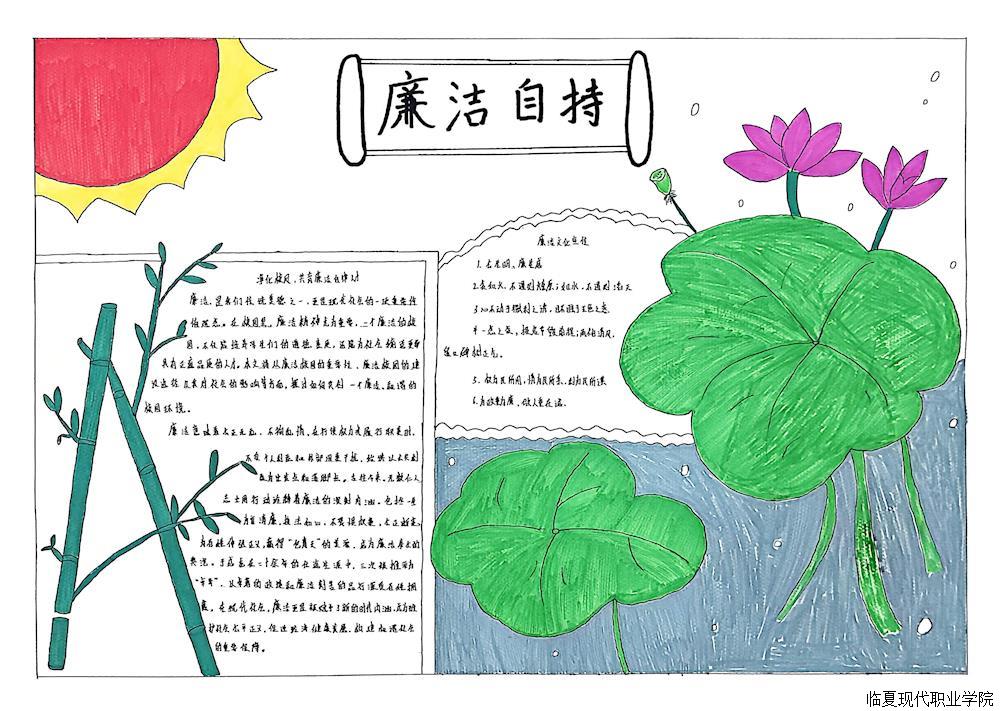 为进一步落实立德树人的根本任务,提升师生队伍的整体素质,督促全体师生在教育和学习中践行廉洁自律,学院组织开展“立德修身强素质,清风廉韵满基础”主题手抄报评比活动。
