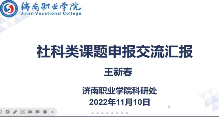 教研活动中,济南职业学院科研处王新春博士就社科类课题申报做了指导。她重点对社科课题解读、申报书填写及课题申报注意事项做了详细阐述;山东省教育科学研究院教育评估中心宫珂副教授对师范类专业认证的申请,从认证的涵义、相关材料准备等方面提出了建设性意见。