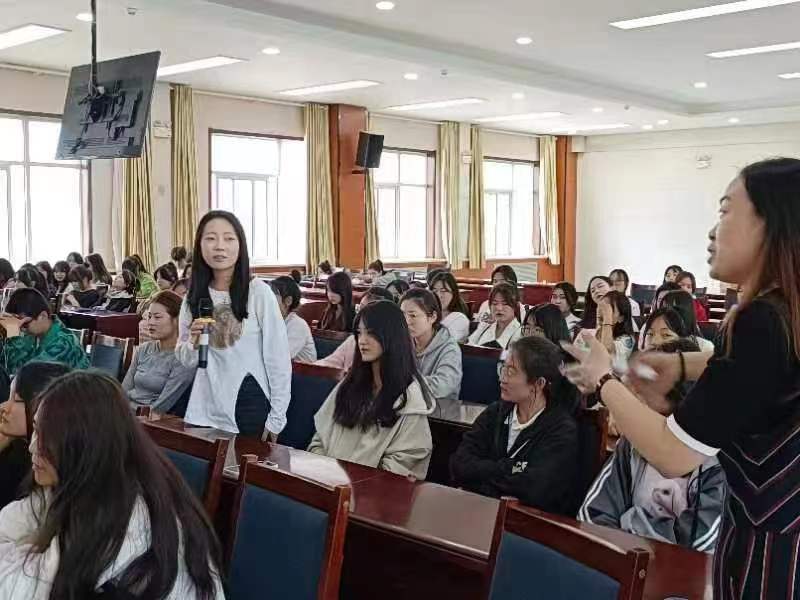 于淑贞教授从《幼师范儿》视频导入,引发学生思考——为何选择这个专业?这是一个怎样的专业?这个专业的前景如何?如何学好这个专业?并就以上问题展开了深入的讲解。教育是一门艺术,面对一群有思想有感情的小朋友们,如何赢得他们的信任与尊重并对他们实施教育呢?教授告诉大家,天生我材必有用,要想成为一名合格的幼儿教师,一要树立坚定的信念,二要养成成功的习惯,三要保持积极的心态。讲座中,同学们积极互动、踊跃发言,提出自己的困惑,于教授运用深厚的理论知识和幽默风趣的语言答疑解惑,指出“将琐碎忙碌的教育日常,过成智慧探索的诗意生活”是幼儿教师的哲学,告诉学生在今后的幼教生涯中应摆正心态,积极探索,勤于思考,呈现精彩。
