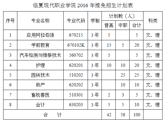 临夏现代职业学院普通高职2016年推免招生工作实施办法
