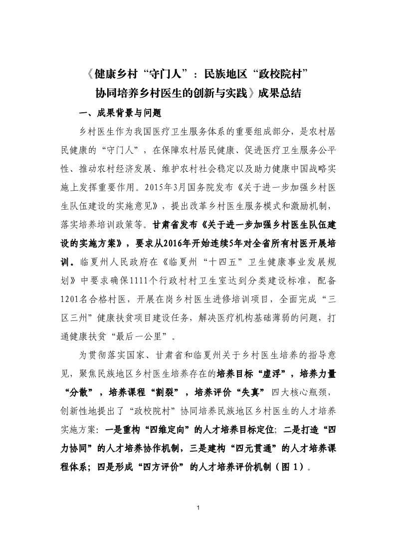 健康乡村“守门人”:民族地区“政校院村”协同培养乡村医生的创新与实践